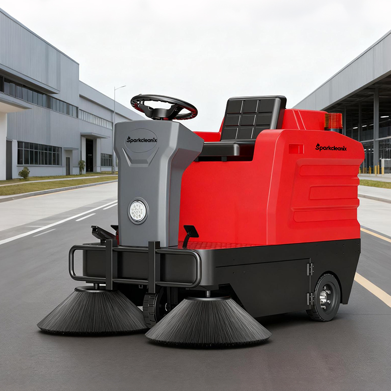High-capacity sweeping machine built for factories, warehouses, logistics centers, and large commercial sites demanding superior dust control and productivity.